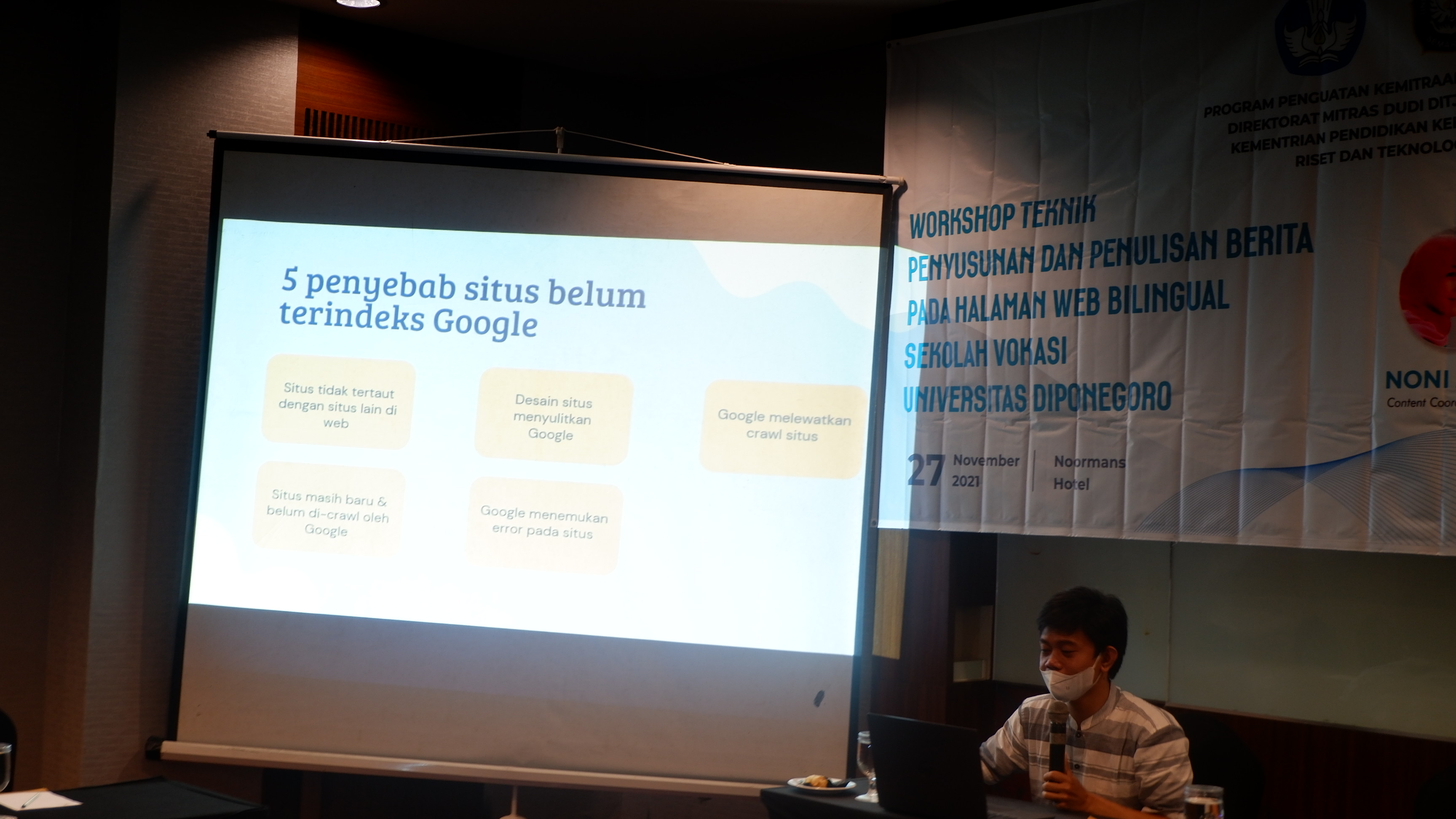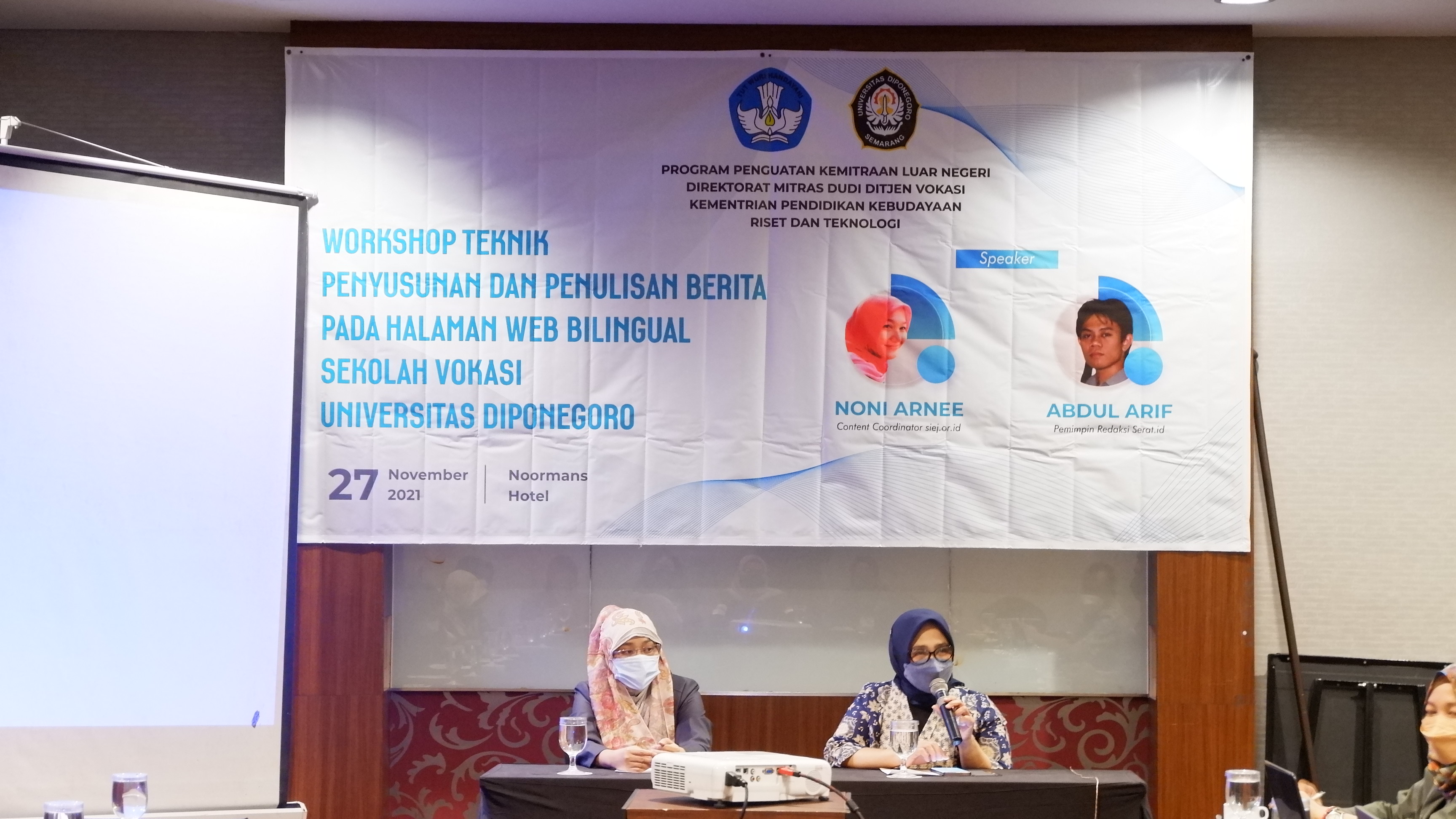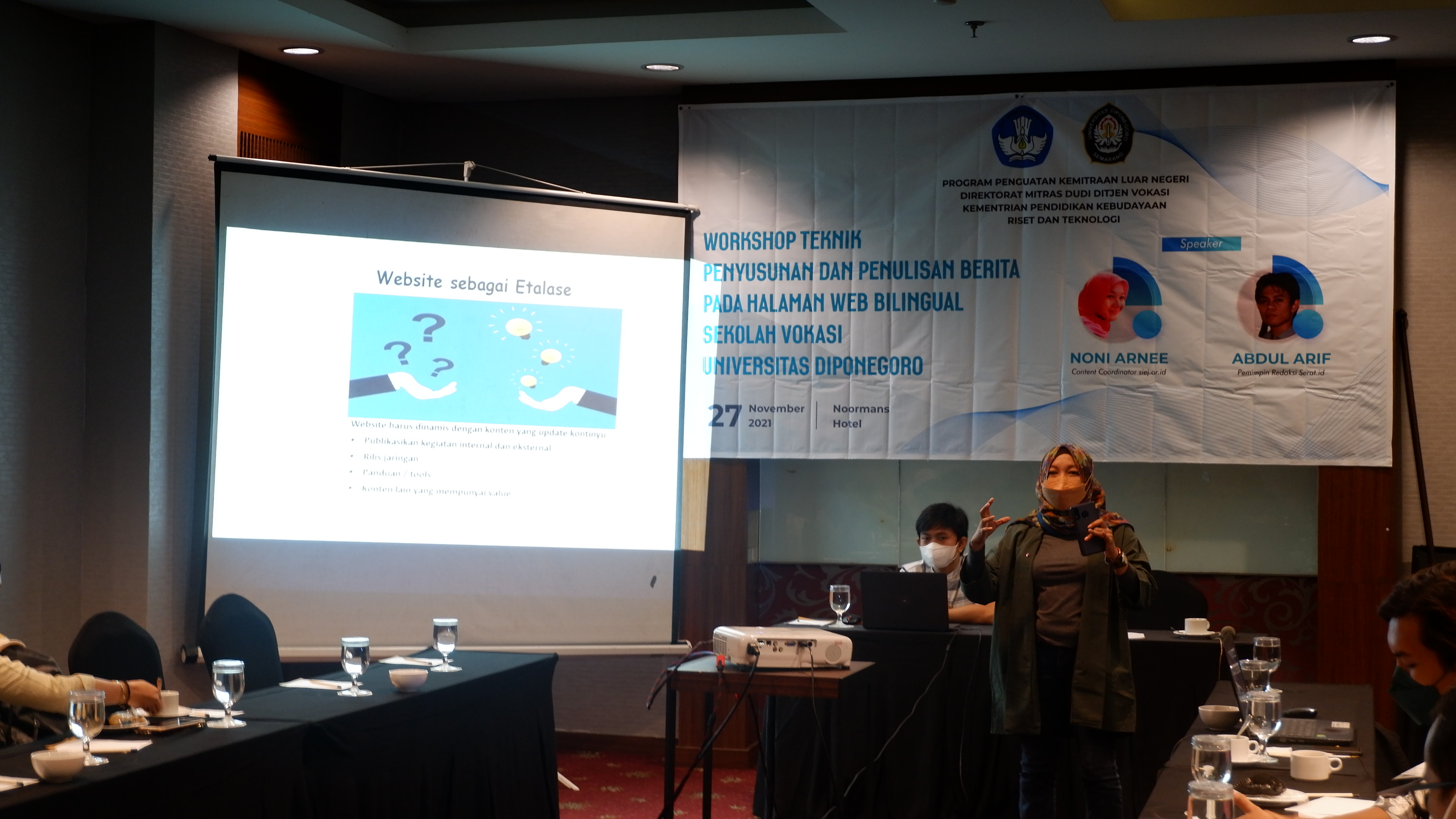 Sekolah Vokasi Universitas Diponegoro menggelar Workshop Teknik Penulisan dan Penyusunan Berita Pada Halaman Web Bilingual SV Undip. Kegiatan ini diikuti oleh para koordinator konten, editor dan pengembang website di lingkungan Sekolah Vokasi Undip pada Sabtu, (27/11/) di Hotel Noorman Semarang. Hadir sebagai pembicara Conten Coordinator siej.or.id Noni Amee dan Pemimpin Redaksi Serat.id Abdul Arif