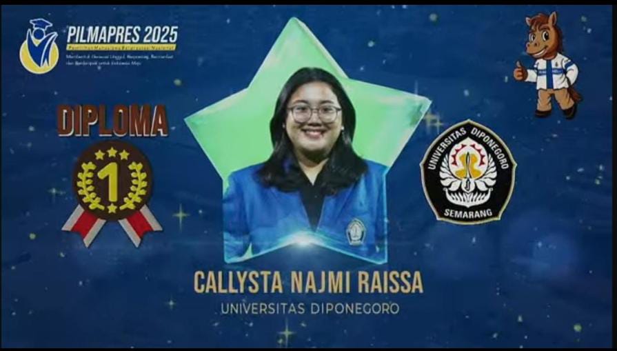 Kabar membanggakan datang dari Universitas Diponegoro. Dalam ajang Pemilihan Mahasiswa Berprestasi (Pilmapres) Nasional 2025, Callysta Najmi Raissa, mahasiswa Sekolah Vokasi UNDIP, berhasil meraih Juara 1 Nasional kategori Diploma/Vokasi. Sementara itu, untuk kategori Sarjana/akademik, prestasi tertinggi juga diraih oleh mahasiswa UNDIP, Felicia Hestiawan. Kedua pencapaian ini menunjukkan konsistensi UNDIP dalam melahirkan talenta unggul di berbagai jalur pendidikan.
