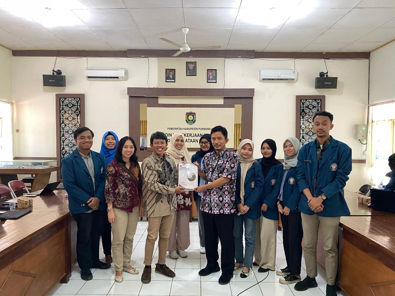 Pada hari Kamis, 21 Desember 2023 telah dilaksanakan Diseminasi hasil Program MBKM tentang penyusunan Rencana Tata Ruang oleh Mahasiswa Perencanaan Tata Ruang dan Pertanahan (PTRP) angkatan 2020 Sekolah Vokasi, Universitas Diponegoro di Kabupaten Purworejo yang bertempat di Aula Pertemuan Kantor DPUPR Kabupaten Purworejo. Acara ini dimulai pada pukul 10.30 WIB yang dihadiri oleh Kepala Bidang Tata Ruang DPUPR Kabupaten Purworejo (Yusuf Syarifudin, S.T., M.Sc.), Ketua Program Studi Perencanaan Tata Ruang dan Pertanahan (Khristiana Dwi Astuti S.T., M.T.), serta jajaran staf DPUPR Kabupaten Purworejo dan Dosen Program Studi Perencanaan Tata Ruang dan Pertanahan (Pangi, S.T., M.T.; Pratamaningtyas Anggraini, S.T., M.T.; Reny Yesiana, S.T., Syachril Warasambi Mispaki, S.T., M.Eng.; M.T.; Dr. Intan Muning Harjanti, S.T., M.T.; Bintang Septiarani, S.T., M.T.). Acara dimulai dengan sambutan kedua belah pihak yang diawali oleh Kepala Bidang Tata Ruang DPUPR Kabupaten Purworejo dan Ketua Program Studi Perencanaan Tata Ruang dan Pertanahan.