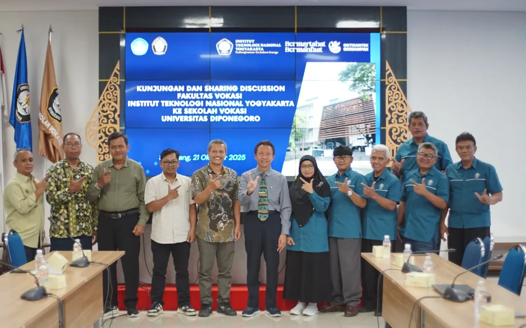 Semarang, 21 Oktober 2025 – Sekolah Vokasi Universitas Diponegoro (Undip) menerima kunjungan Institut Teknologi Nasional Yogyakarta (ITNY) untuk menggelar sharing discussion bersama Program Studi Rekayasa Perancangan Mekanik (RPM). Kegiatan ini diselenggarakan untuk mendiskusikan terkait rencana pembukaan Program Sarjana Terapan di ITNY. Acara berlangsung pada 21 Oktober 2025 di Lantai 4 Sekolah Vokasi Undip, Tembalang, Kota Semarang, Jawa Tengah.